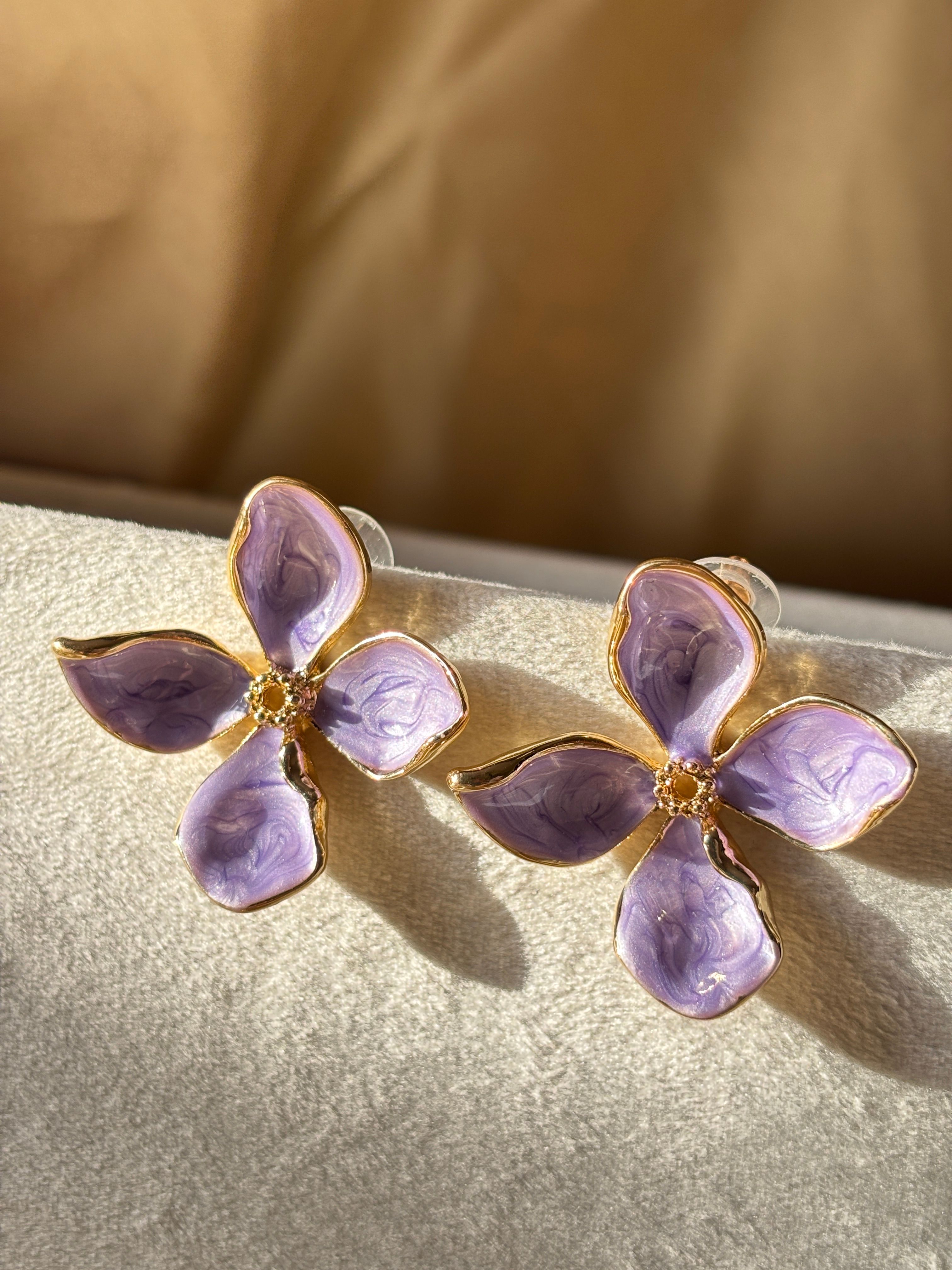 Delicate symmetry meets vibrant colour in the Four Petal Flower Earrings. Finished in rich enamel across four beautiful shades — Blue, Green, Lavender, and Pink — these lightweight artificial danglers bring a soft floral statement to kurtas, indo-western outfits, and everyday ethnic looks.